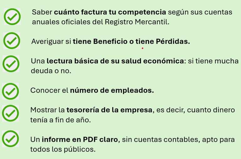 Solicita un informe claro y resumido basado en las cuentas de tu competencia por solo 49€.